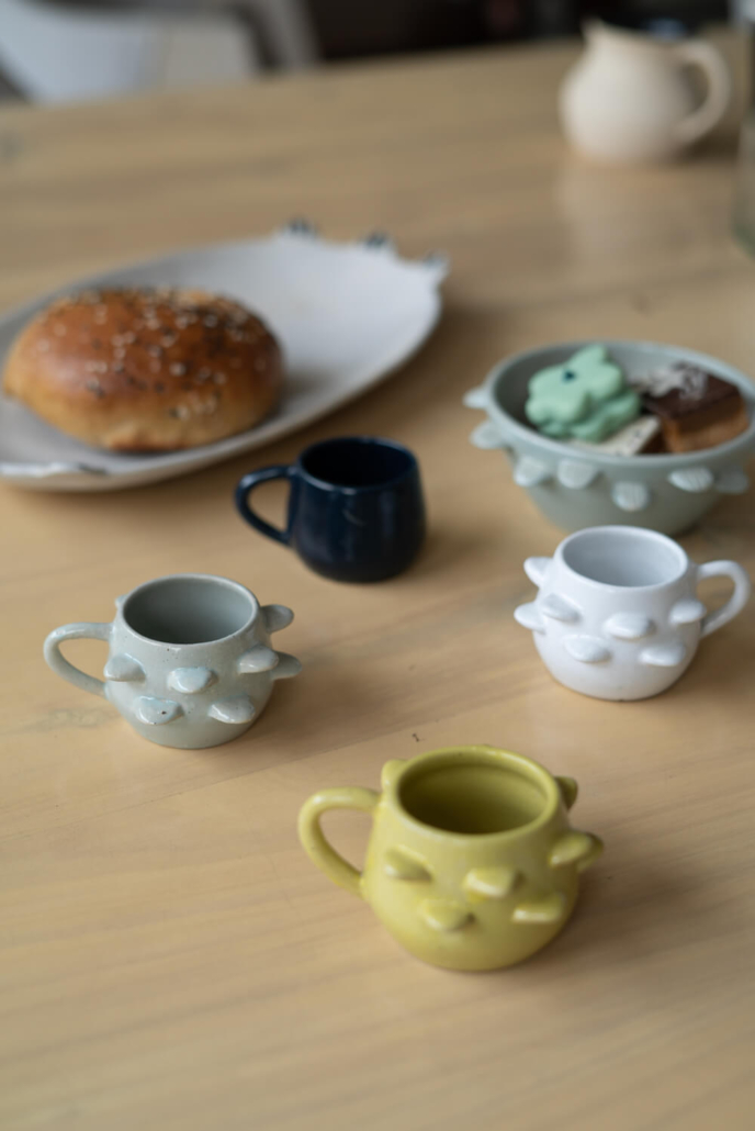 Nos honra ser parte de este proyecto a través de la creación de textiles en telar de pedal, jarras de vidrio soplado y tazas elaboradas con arena volcánica, piezas que aportan identidad, calidez